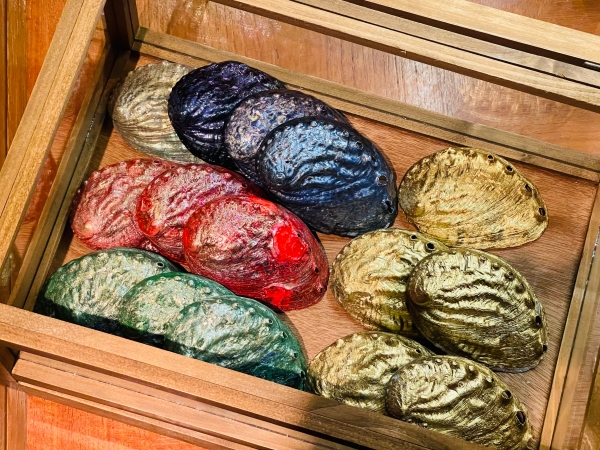 A perfect souvenir from your trip to Japan. Teppan&grill R Chef-Handcrafted "Abalone Ornament" Limited quantities available, but we're working hard to create them.